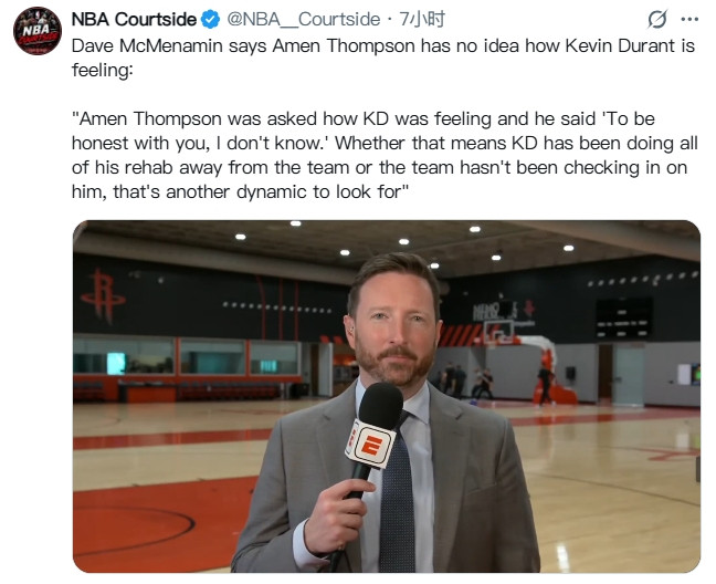 皇冠博彩网皇冠信用站直播吧04月27日讯据ESPN记者DavidMcMenamin现场报说念皇冠比分,火箭方面并不明晰杜兰特的伤势以及他目下发生了什么。