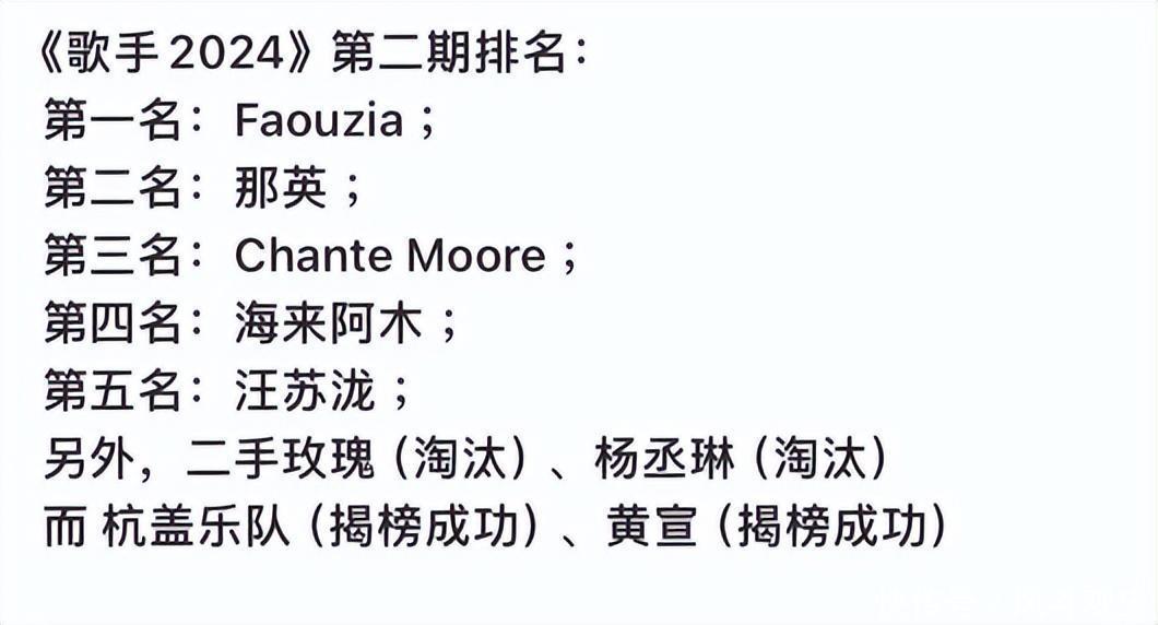 是以,排行垫底的二手玫瑰和杨丞琳只怕就无缘下一期节目了。